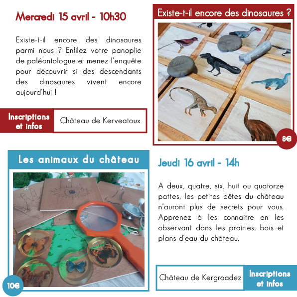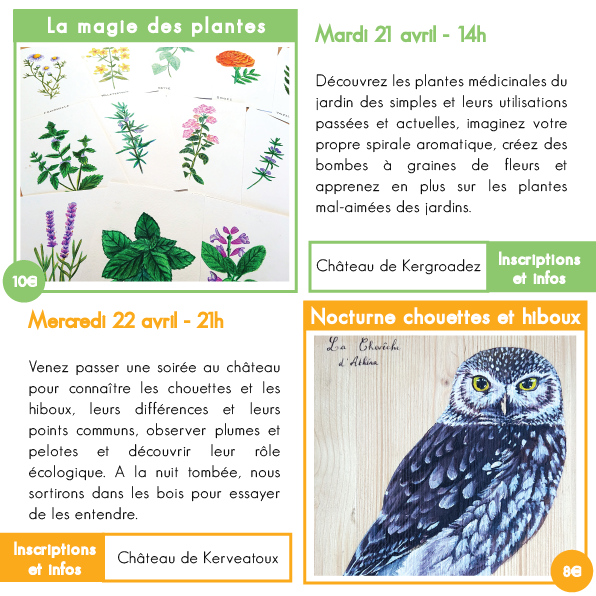 Pour les ateliers au château de Kergroadez, inscriptions ici : https://kv2.kergroadez.fr/calendrier/